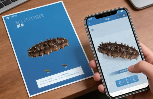 智慧渔业AR实训系统是利用三维虚拟仿真技术、增强现实技术开发的一款AR互动体验软件。系统展示了智慧渔业关键设施如投料机、人工鱼礁、水质传感器等,以及各类鱼虾蟹等水产资料。用户使用识别设备扫描高清AR图谱,即可在AR图谱上叠加三维模型,进行多角度观察与交互,获得丰富而有趣的交互体验。