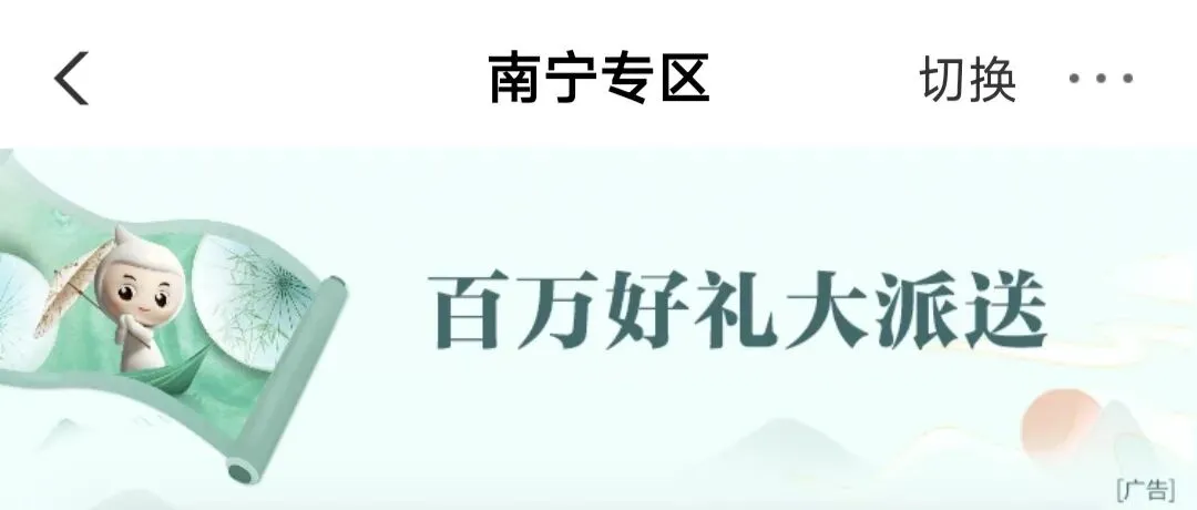 农业银行首页,点击城市专区,城市右上角点切换到南宁。