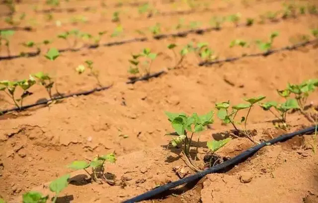①粮棉作物。一般大田作物多采用毛管移动,对低秆的可做横向移动,对高秆的需借助专用移动机具移动或调整种植结构。如套种、宽窄行等,在宽行中进行移动。移动毛管首端要留一段不装滴头的辅助毛管。一条毛管可以移动数次,一组毛管可移动到另一处,单根毛管长度一般为30—50m。