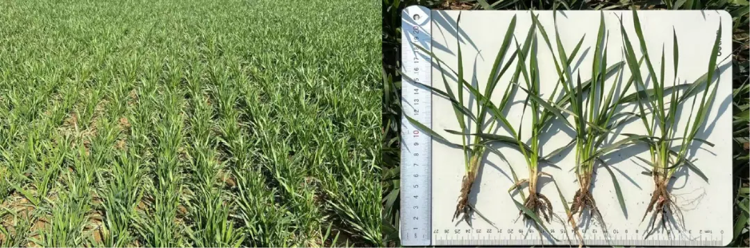 管理建议:春季管理应突出“早”,在起身期以“促”为重点。起身初期可喷施磷酸二氢钾、氨基酸叶面肥,促苗生根快长。第一次水肥提前至起身后期,亩追施尿素15-20 kg,灌水40立方米。