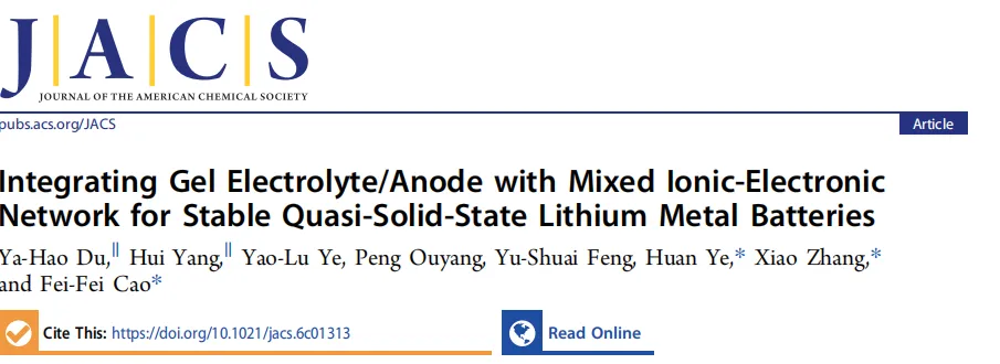 『锂电』华中农业大学 JACS:离子电子混合网络凝胶电解质 - 阳极一体化策略,构筑高稳定高能量密度准固态锂金属电池