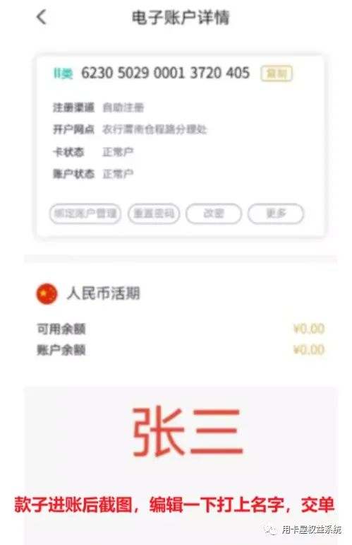 按要求入金,转完点开显示全部卡号,截图,编辑上你的开户名字,交单!
