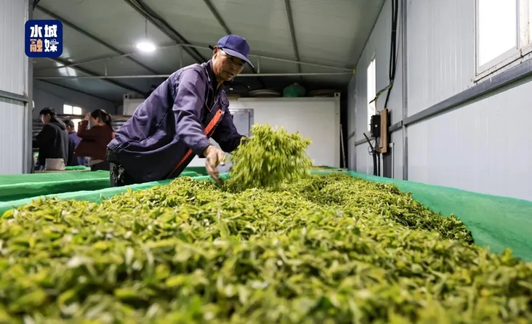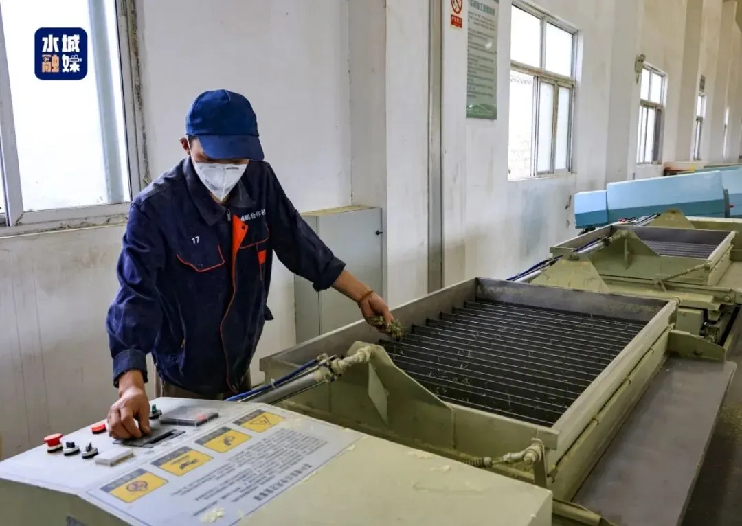 鲜茶采摘完成后,茶农们将茶青送往合作社收茶点,工作人员现场称重、登记,确保每一份劳动成果都能及时兑现。在干净整洁的制茶车间里,工人们身着工装、规范操作,将新鲜茶青依次进行摊晾、杀青、理条、烘干等工序,自动化设备与传统工艺相结合,让深山好茶的风味得以完整保留。