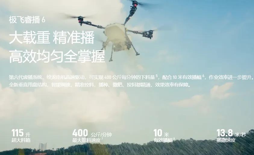 农业无人机系列:这是公司的核心产品线,也是主要的收入来源。极飞的农业无人机具备喷洒、播撒、航测、运输四大功能,能够全自主完成精准喷洒农药、播种、撒肥、巡田以及农产品运输等任务。2024年度,极飞科技在全球农业无人机市场占据17.1% 的市场份额,排名世界第二。