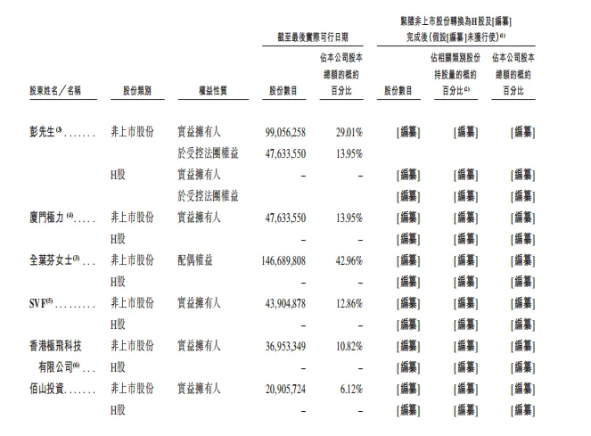 根据招股书披露的股权架构,极飞科技的股权结构相对集中,创始人彭斌拥有绝对的控制权。