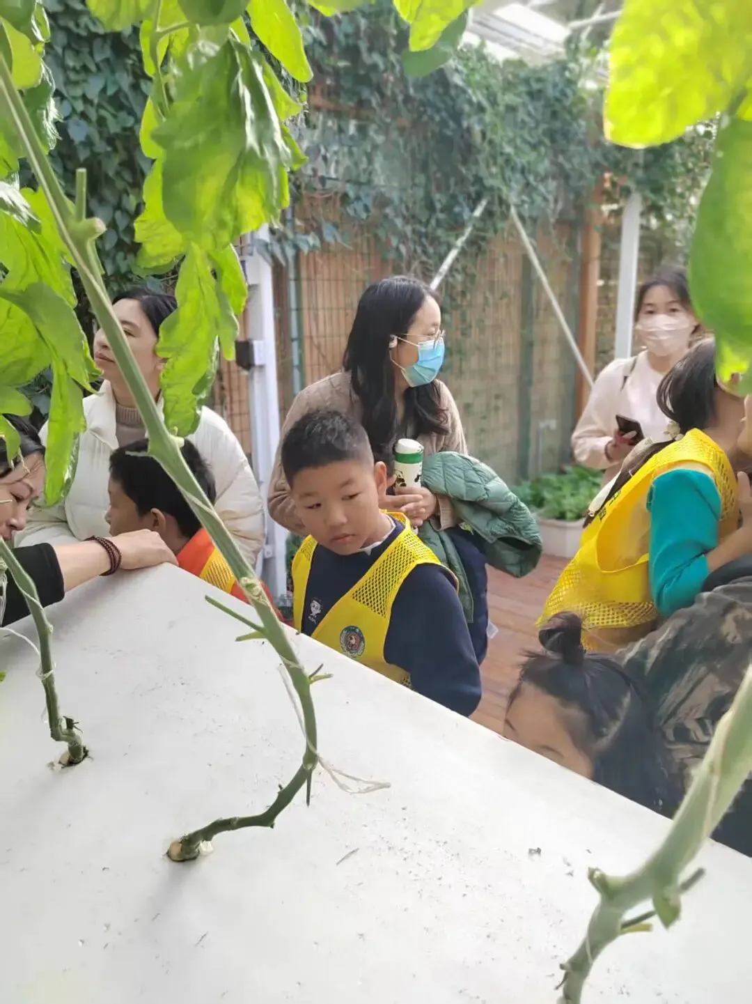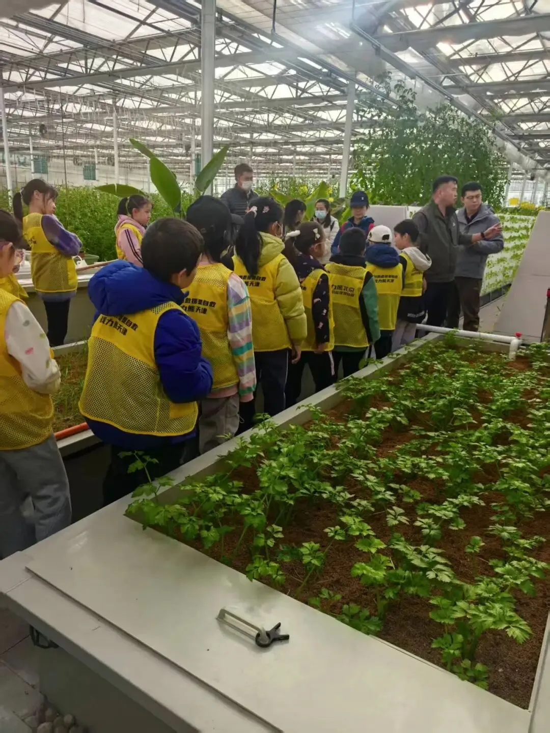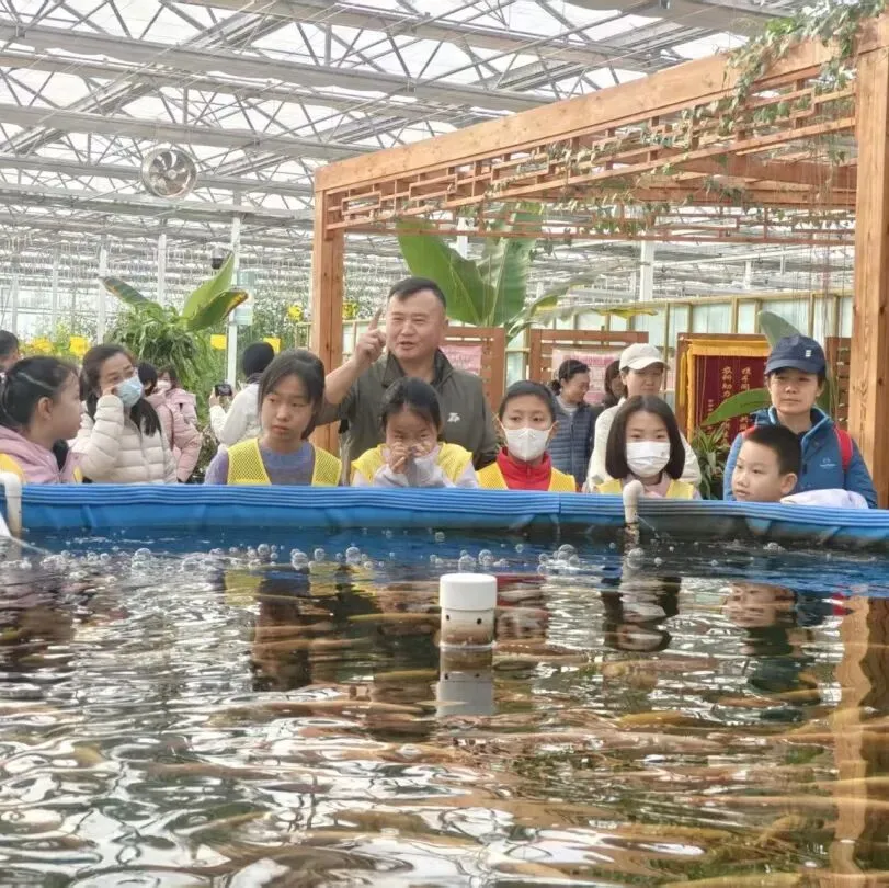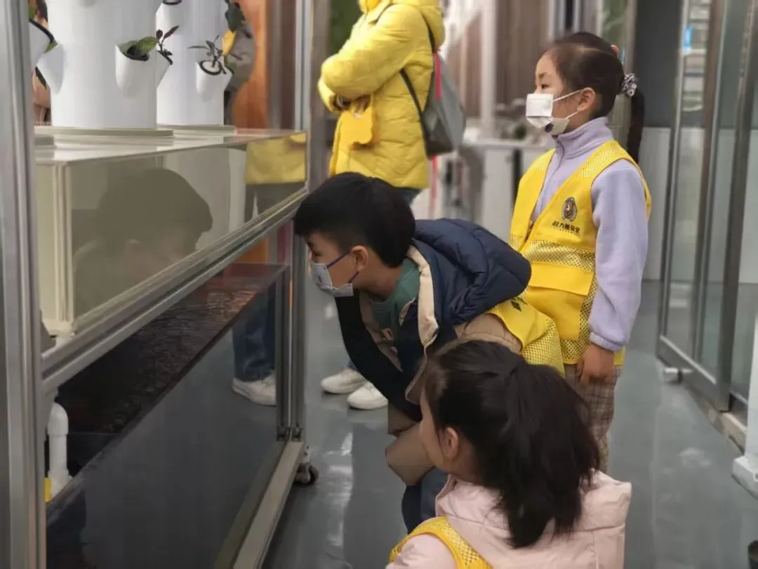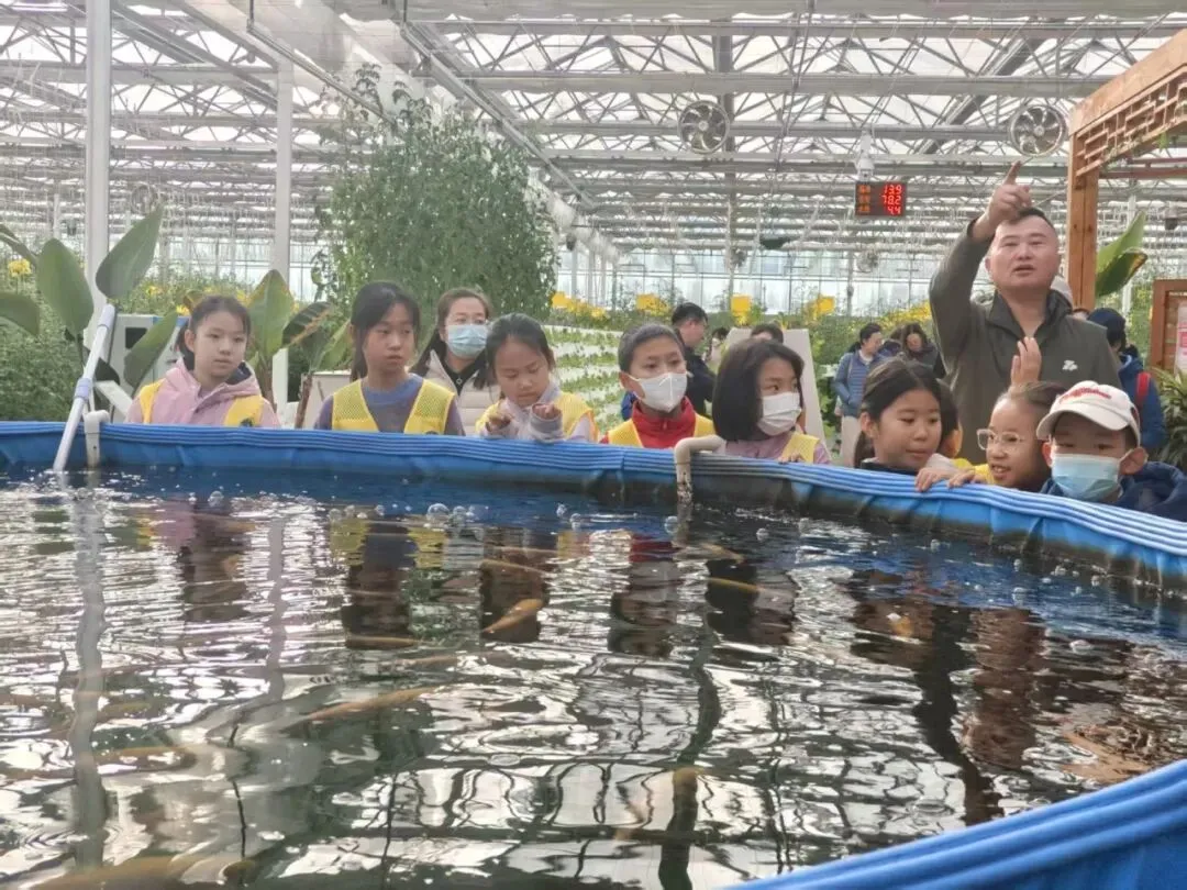1. 导师带领参观基地规模化鱼菜共生展示区,直观观察鱼、菜生长状态及系统运作流程。