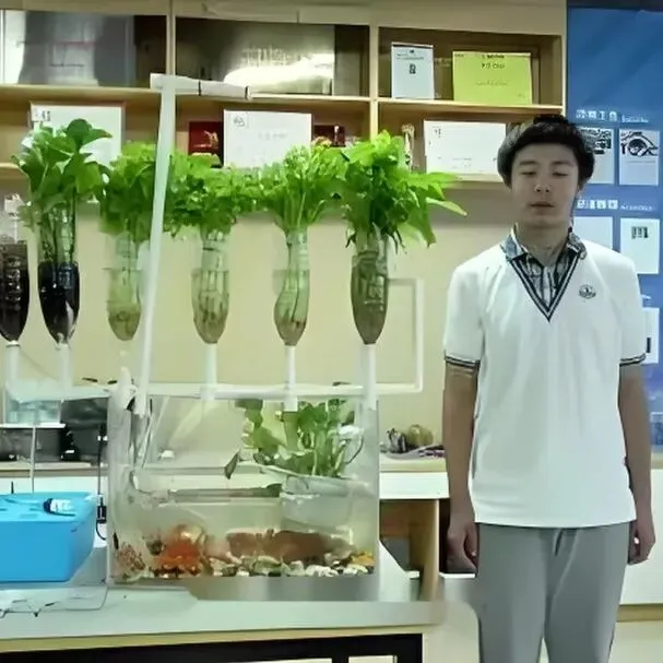 2. 导师讲解系统核心组件(养殖槽、种植床、过滤装置等)功能,答疑互动,深化认知。