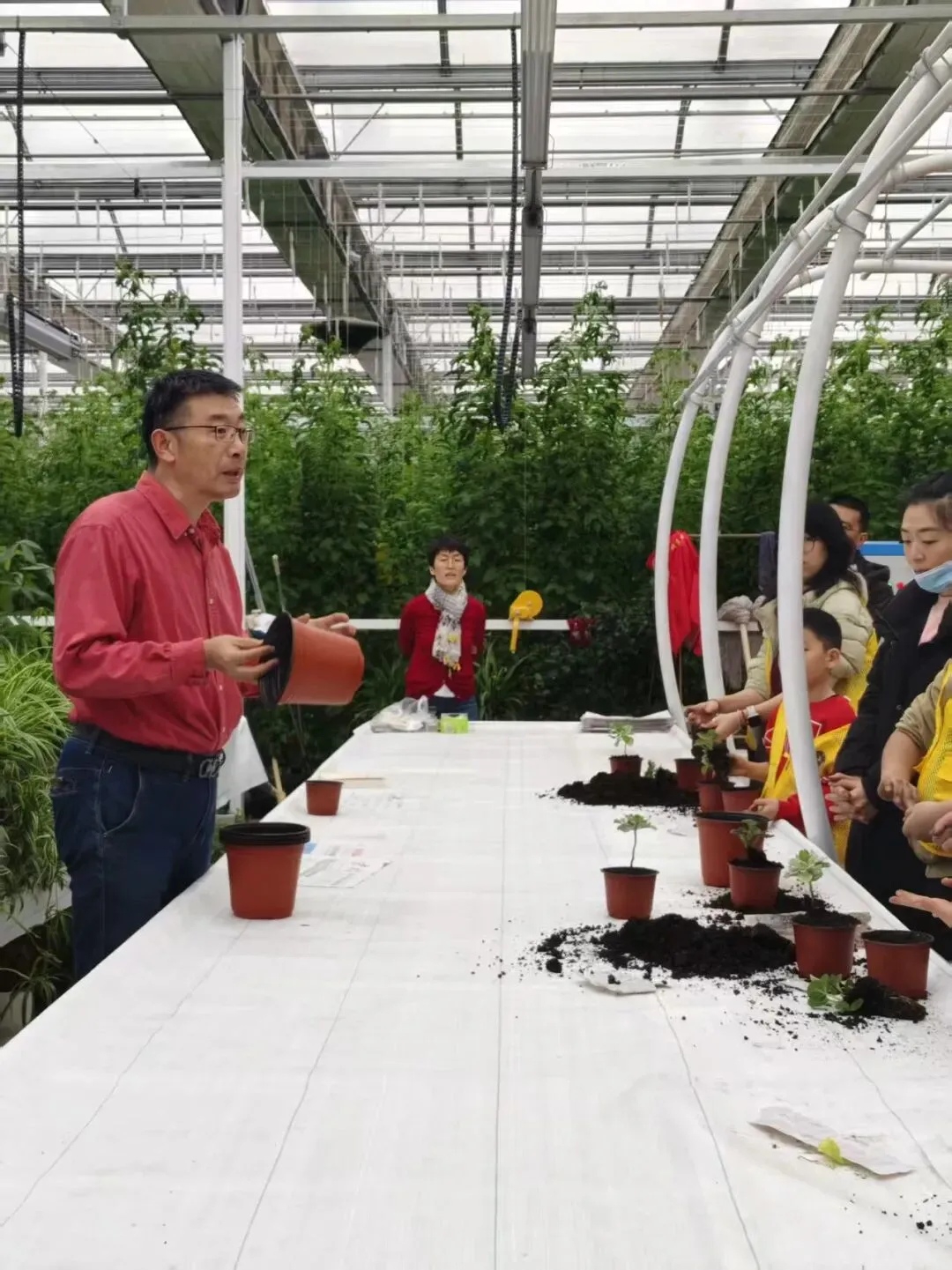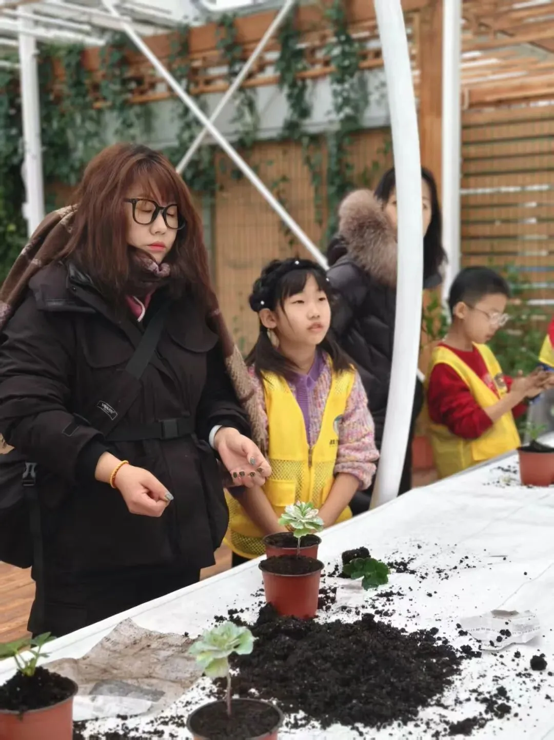2. 学员实操播种,完成种植环节,感受育苗乐趣,了解植物生长基础条件。