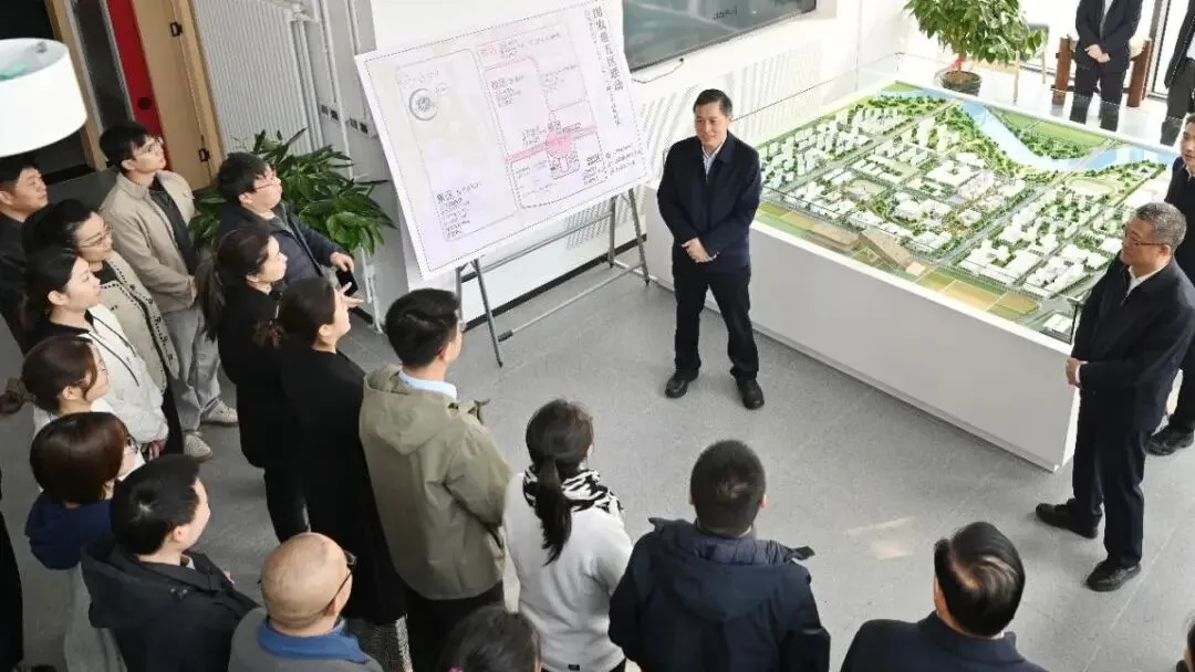 平谷区发展改革委主任康旺枞,校长助理、国农港建设指挥部总指挥曲瑛德详细汇报了国农港“五区”联动规划建设情况,全面阐释项目整体布局、建设目标与推进思路。随后,钟登华、陈卫一行前往白各庄消防救援站,在楼顶远眺国农港地块实景,听取项目最新建设进展汇报,直观感受国农港建设的整体态势与发展潜力。