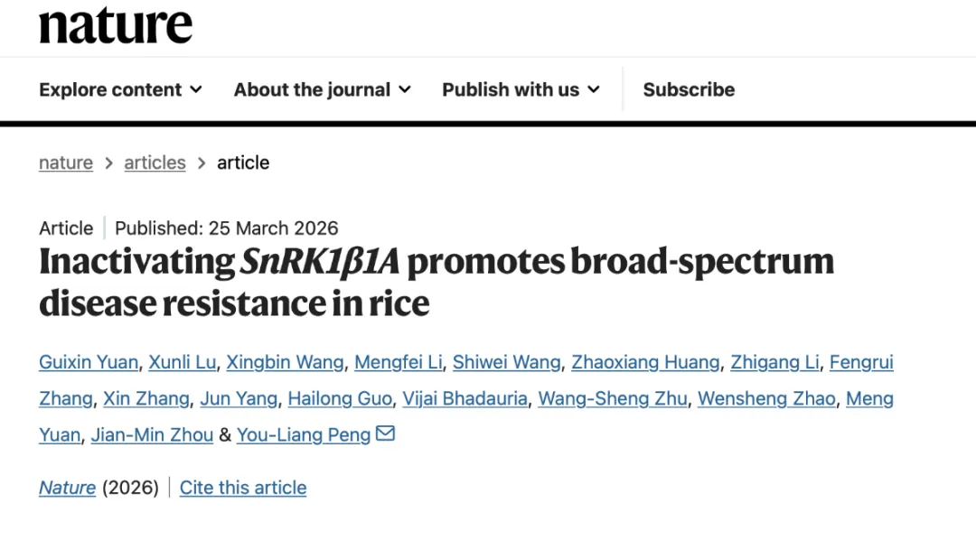 新闻发布厅 | 《自然》发表中国农大彭友良团队研究成果:增强水稻广谱抗病性的新策略