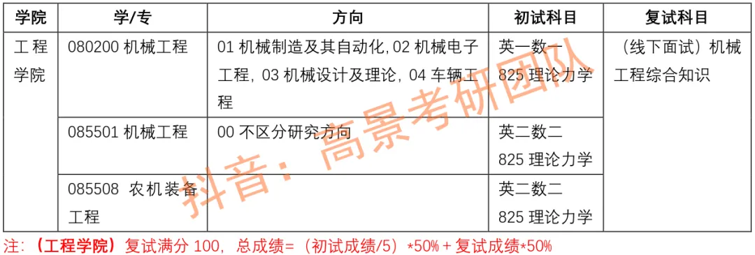 本次分享的是位于广东广州的双一流高校——华南农业大学历年录取机械研究生的情况!!!扫码加华南农业大学考研群,了解更多信息~华南农业大学工程学院招收机械硕士,初试专业课考825理论力学,详细如下表:工程学院源于1958年华南农学院的“农业机械化教研室”,1961年成立“农业机械化系”,1973年为广东农林学院农业机械化系,1984年为华南农业大学“农业工程系”,1993年组建为“工程技术学院”,2001年更名为“工程学院”。学院具有悠久的办学历史、优良的办学传统和鲜明的办学特色,办学60多年来,学院培养的毕业生中涌现了中国工程院院士罗锡文教授、国家高层次人才特殊支持计划科技创新领军人才等大批知名专家学者,为我国现代农业发展,尤其是南方农业机械化发展做出了重要贡献。