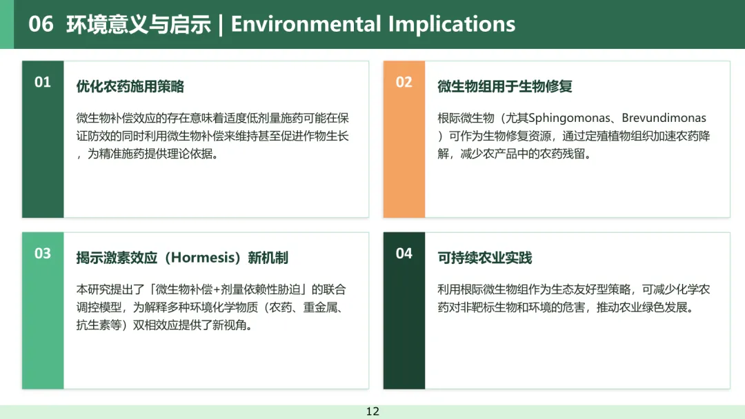 核心未解决点:仅通过相关性证明 Sphingomonas、Nocardioides 等富集,但是否真正降解农药、促生长、提升抗性缺乏直接因果证据。