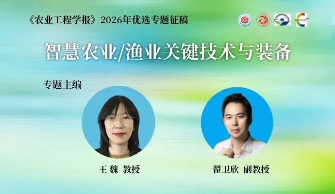 注册-在线投稿-上传稿件-选择“智慧农业/渔业关键技术与装备”专题投稿。英文稿可推荐至《International Journal of Agricultural and Biological Engineering, IJABE》(SCI)(http://www.ijabe.org)审核通过后发表。