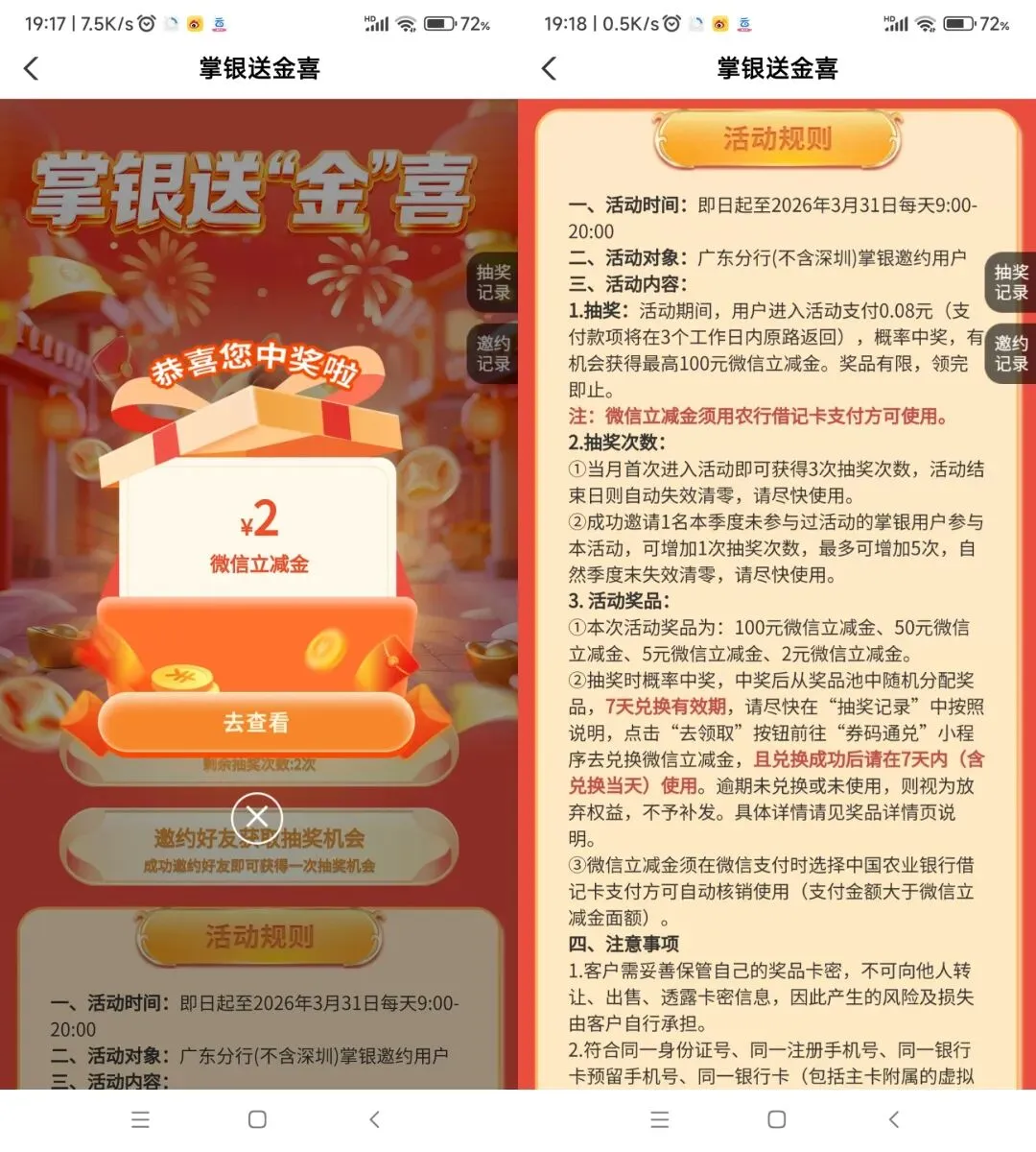广东除深圳支付0.08抽奖三次立减金