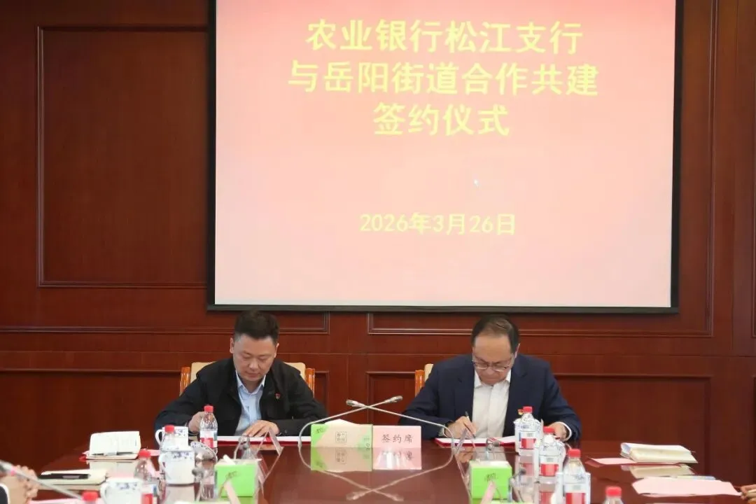 3月26日下午,岳阳街道与农业银行上海松江支行举行合作共建交流会并签署共建协议。岳阳街道党工委书记、人大工委主任陈龙,农业银行上海松江支行党委书记、行长沈健,岳阳街道党工委副书记、办事处主任施佩丽及双方相关领导出席。