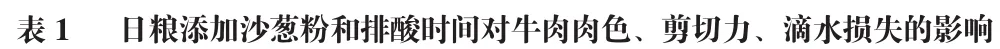 1 日粮添加沙葱粉和排酸时间对牛肉肉色、剪切力、滴水损失的影响