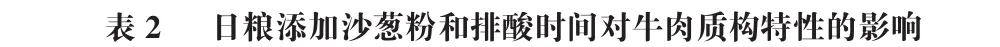 2 日粮添加沙葱粉和排酸时间对牛肉质构特性的影响