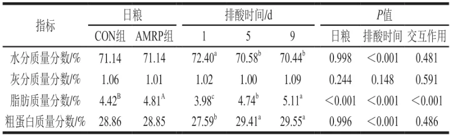 3 日粮添加沙葱粉和排酸时间对牛肉常规营养成分的影响