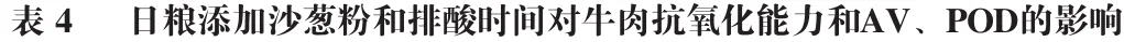 4 日粮添加沙葱粉和排酸时间对牛肉抗氧化能力的影响