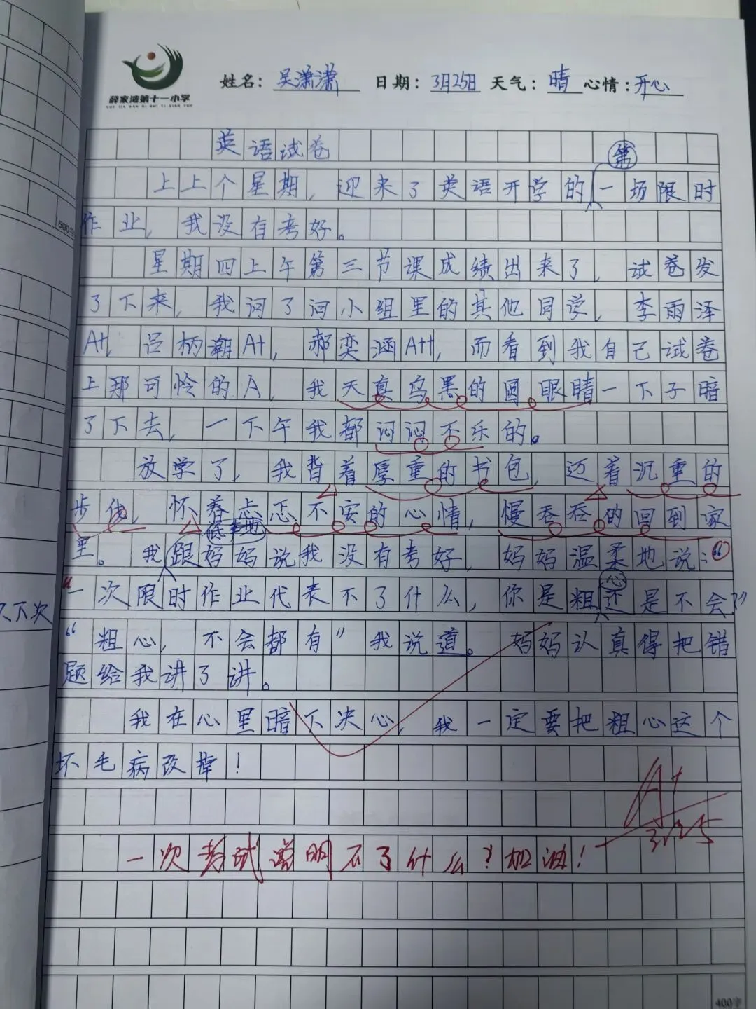 从教多年,我愈发笃定,教育不是流水线式的工业生产,而是精耕细作的农业,每个孩子都是一颗独特的种子,自有其生长节奏,急不得、躁不得,唯有耐心浇灌,方能静待花开。看着班里这群孩子从懵懂入学到如今的点滴蜕变,尤其是写作上的慢慢进步,更让人欣喜