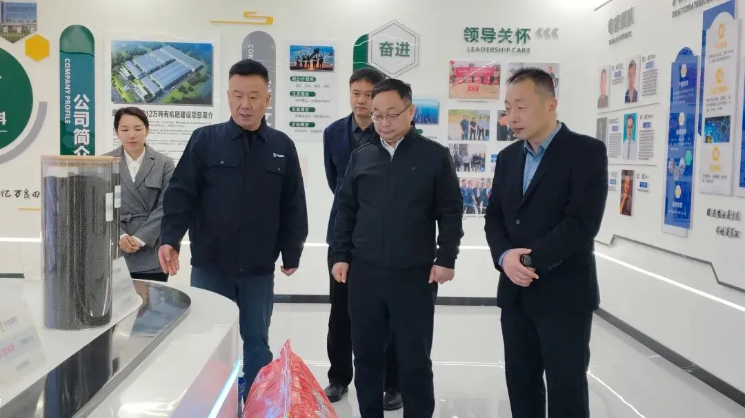 史兆青一行深入公司展厅、生产车间与成品仓库,实地察看生物菌肥生产线运行情况,详细听取公司负责人关于生产经营、技术创新、产能保障及市场供应等方面的工作汇报。