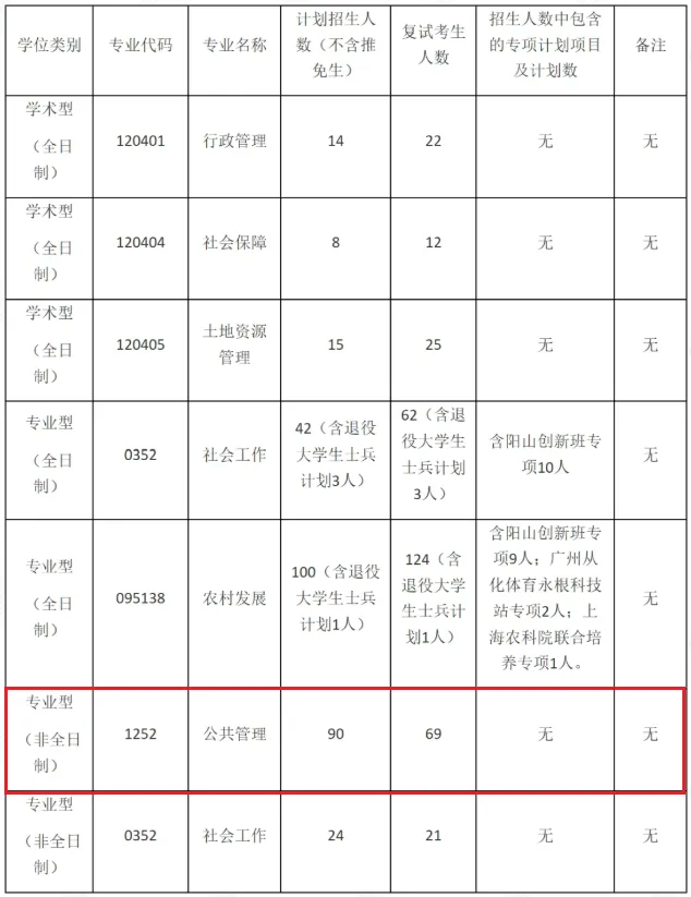 华南农业大学招非全日制MPA90人,2026级分数线为168/39/78,非全日制过线复试69人,初试最高分237,最低分168,预计有调剂指标21人左右。