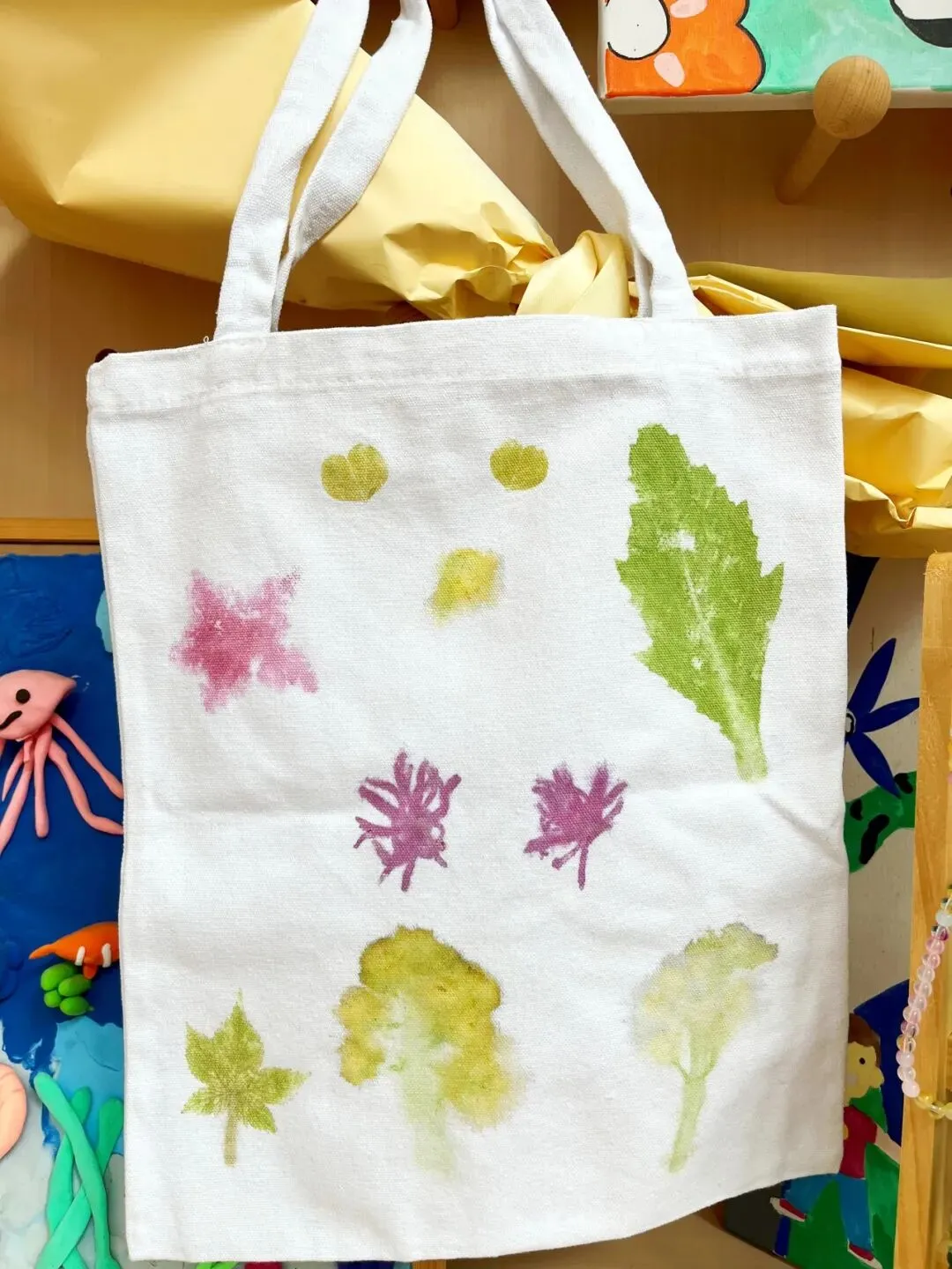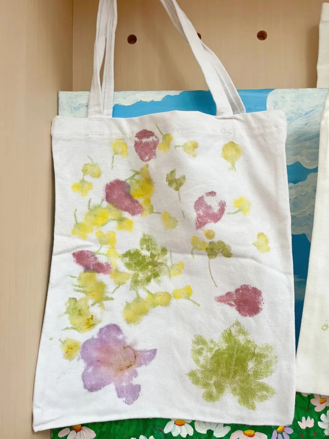 实践体验环节,手工拓印最受孩子们期待。志愿者们提前备好白色帆布袋、新鲜杜鹃花和油菜花,手把手教孩子们平铺花瓣、按压拓印,一朵朵鲜活的花朵定格在布袋上,孩子们小心翼翼操作,将春日美好与快乐珍藏心底。