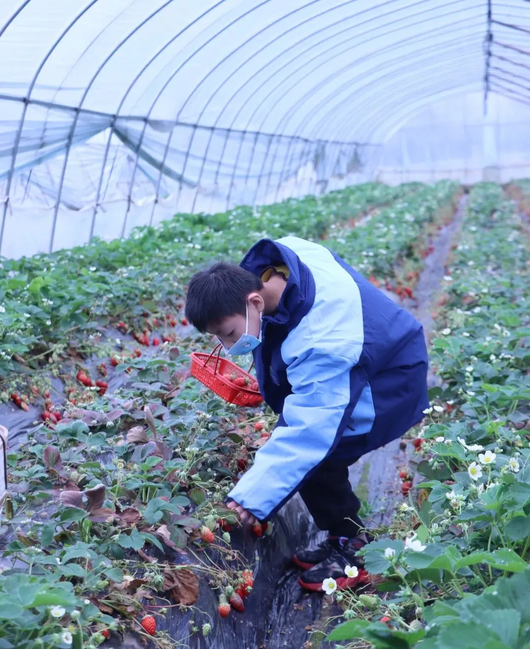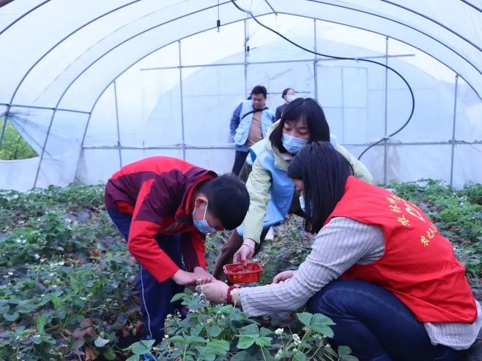 活动最后,孩子们走进草莓种植区,提着小篮子在志愿者陪伴下采摘草莓,品尝清甜果肉,在采摘中体会到劳动的快乐与收获的喜悦。