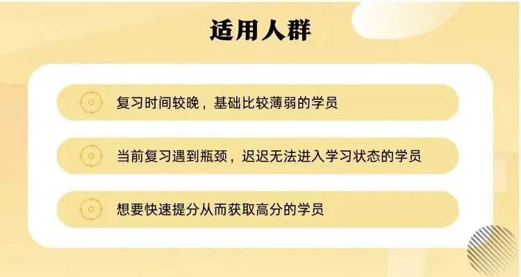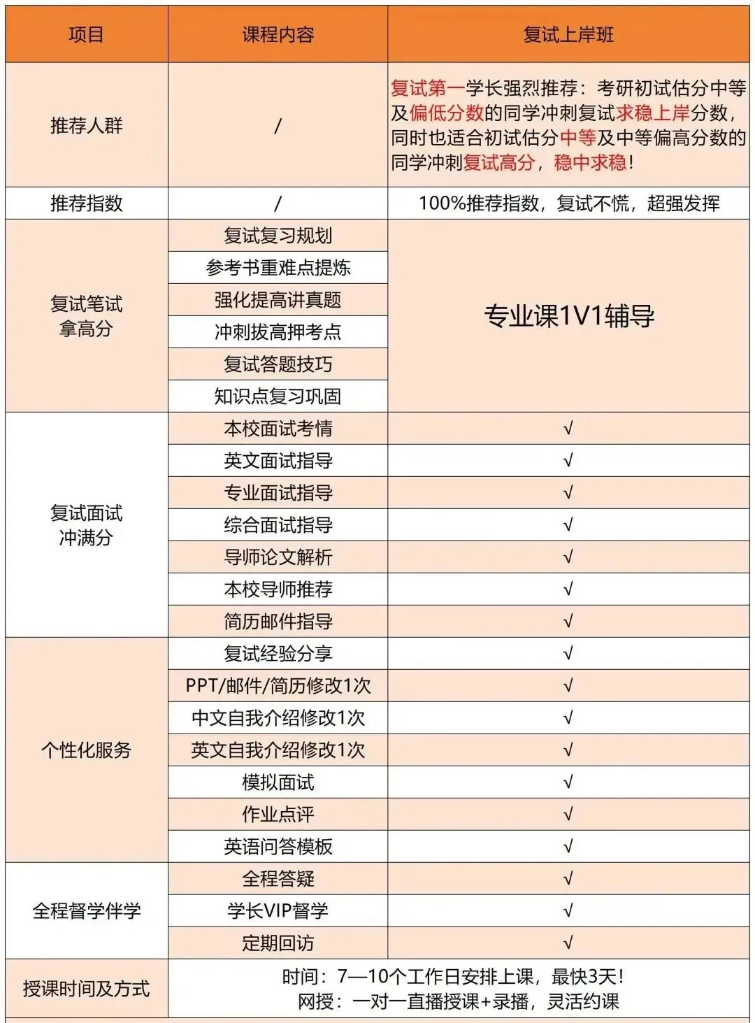 支付报名定金(同时签订协议)——签完协议,支付尾款— —填写对研究生的期望(目标院校、专业、喜欢耐心的/严厉的学长/学姐)——按照你的需求匹配适合的研究生——研究生根据你的学习状况制定专属复习规划,提供研究生的录取证明+成绩——赠送公共课助力礼包——上课(课程都是实时互动的,根据学生反馈随时调整)