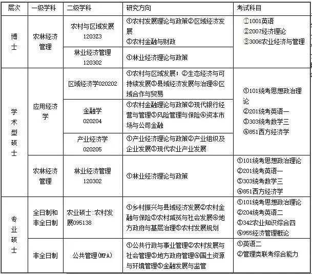 根据学校招生计划和导师招生指标,预计2020年我院博士研究生招收7人,区域经济学、金融学、产业经济学、林业经济管理硕士研究生共招收25人,全日制农业硕士(农村发展)研究生招收25人,非全日制农业硕士和公共管理(MPA)招收60人以上。经济学院研究生入学考试自命题部分参考书目见下图。