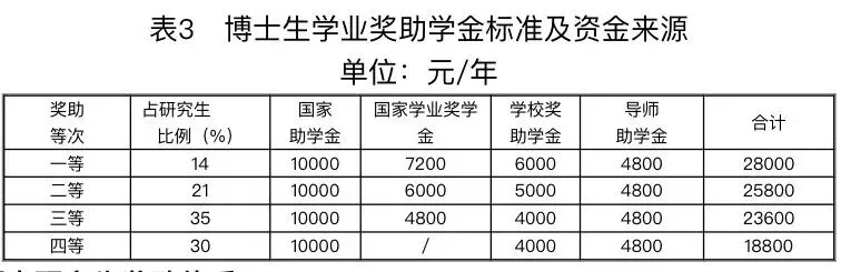 ③国家学业奖学金:奖励标准每生每年4800~7200元(见表3)