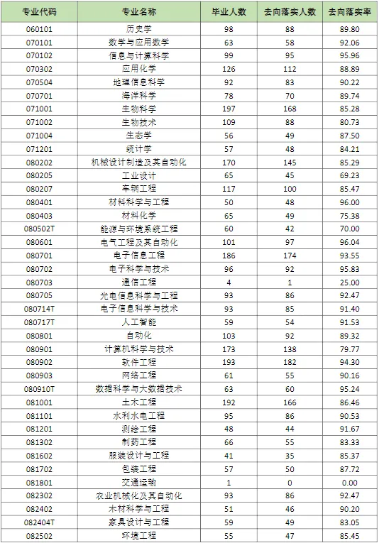 应届本科生应毕业9569人、实际毕业9567人,毕业率99.98%;学位授予9564人、学位授予率99.97%;应届本科毕业生初次就业率87.93%。