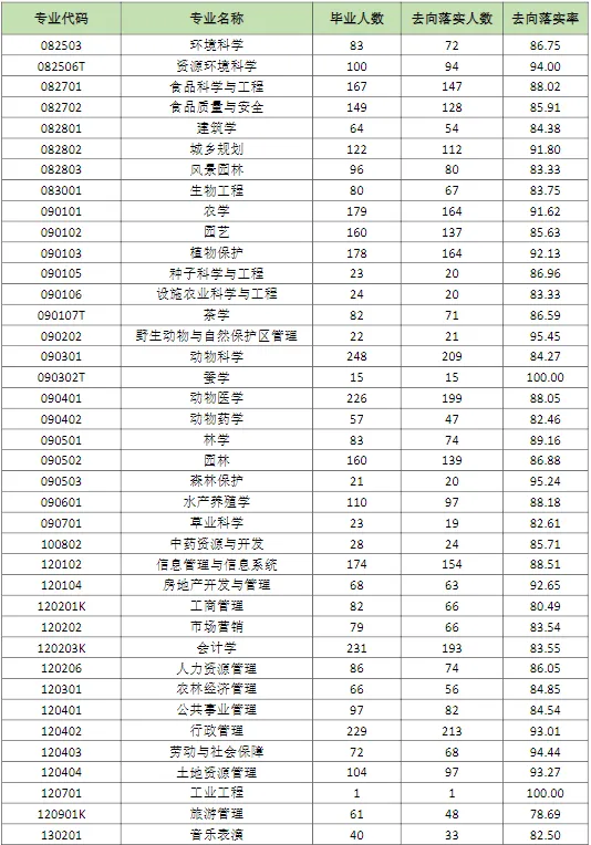截止到2023年12月31日,2023届本科毕业生的毕业去向落实率为91.26%。本科毕业生毕业去向落实率位居前三的学院分别为国际教育学院(97.44%)、材料与能源学院(94.69%)和食品学院(94.67%)。