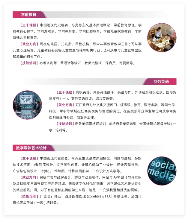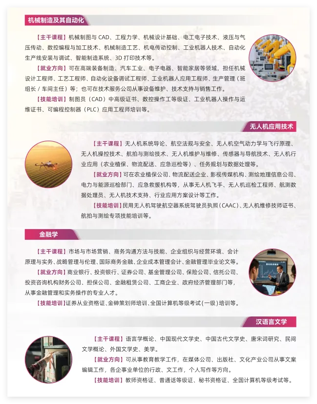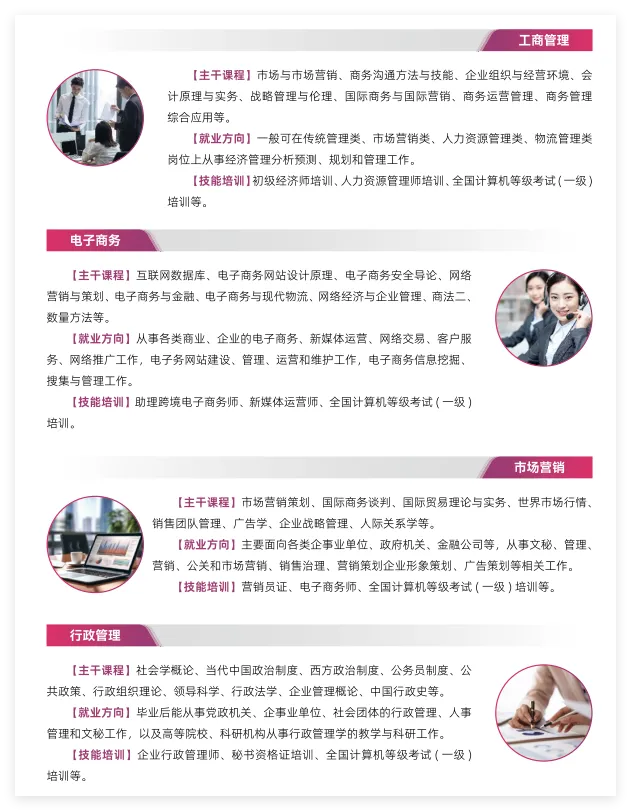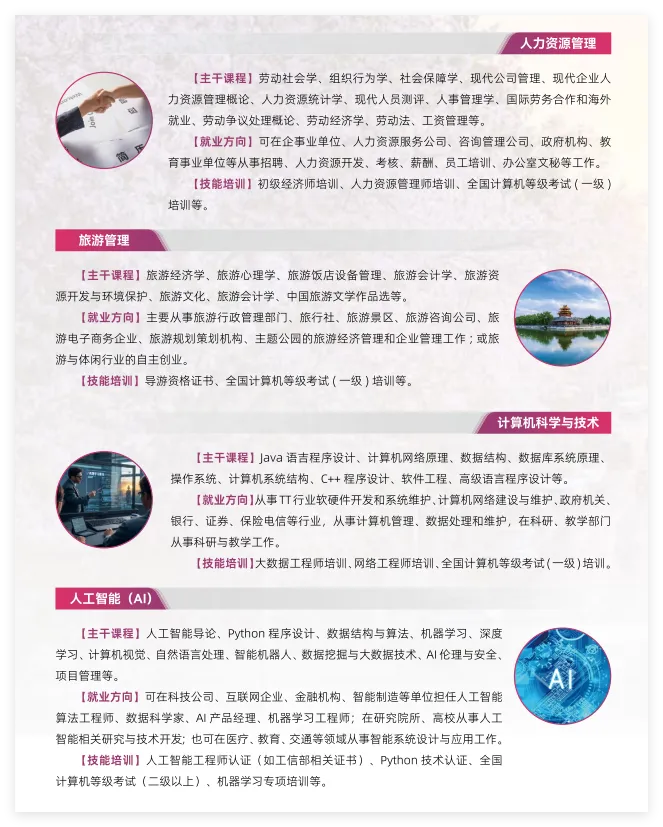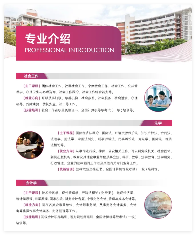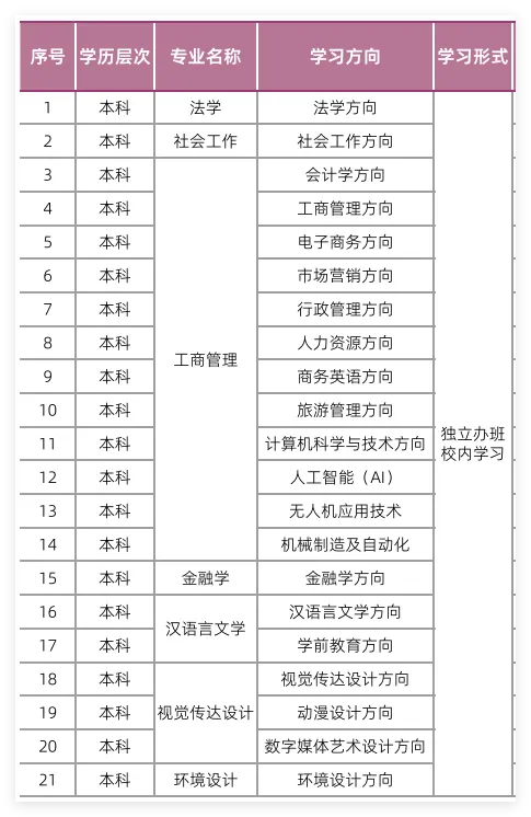 招生专业:法学、社会工作、工商管理、金融学、汉语言文学、视觉传达设计、环境设计
