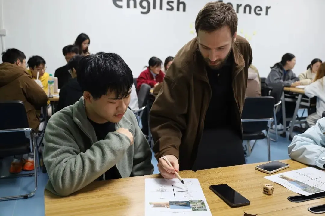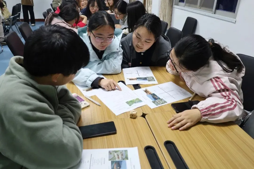 活动伊始,学生助理主持开场热身,并邀请外教嘉宾Michael共同开启本期活动主题。随后进行分组开展第一场热身小游戏“My Rural Life”,同学们轮流掷骰子,根据点数解锁各自的理想乡居生活。大家用英语描绘自己的理想乡居,在想象中触摸到乡村生活的烟火气与生命力。