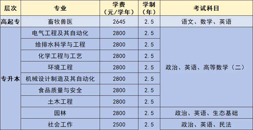 ① 以上学费未含成人高等考试费、平台授课费、教材费;