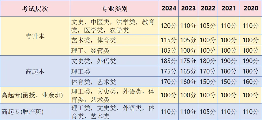 高起专:语文、数学、英语(总分450分)