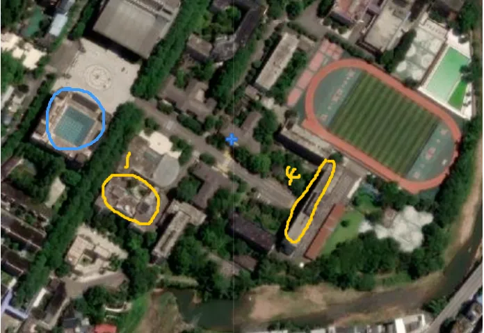10教在新校区,1教在老校区,新老校区在图中可以看见是由天桥连接的,其中4教是水利水电学院的大楼位于老校区,旁边紧临的是老区的操场。其中蓝色的楼是综合楼,提交复试的基础材料是在这栋楼,因为学校所有学院的行政楼都在一起。川农的复试校线都是与国家线一致的,其中农业水土工程属于国家的照顾专业,要比土木水利的线稍微的低一点。