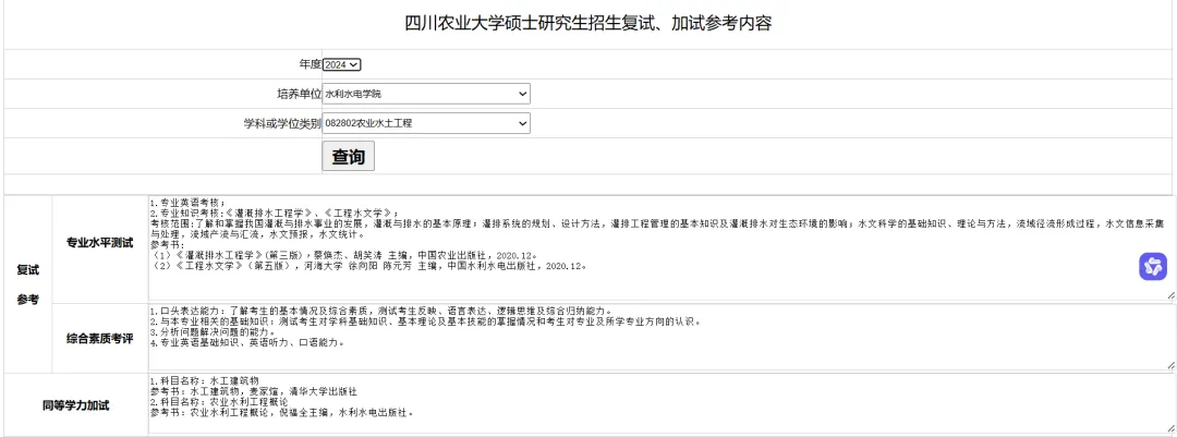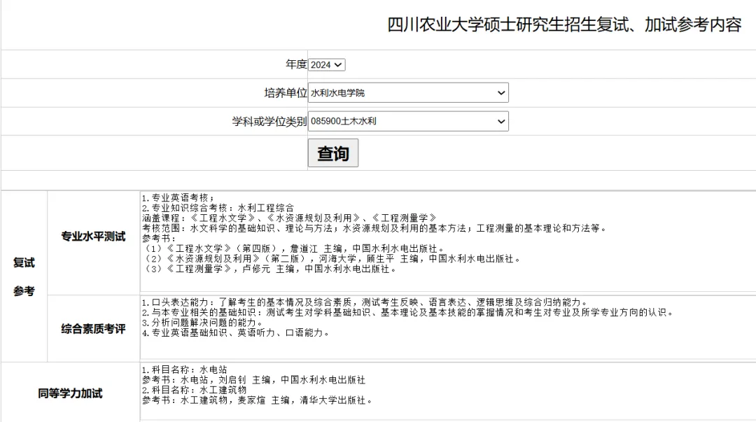 关于笔试教材的查找,由学校研究生院提供的网站可以找到:https://yzb.sicau.edu.cn/zyml/zymlsfs.aspx