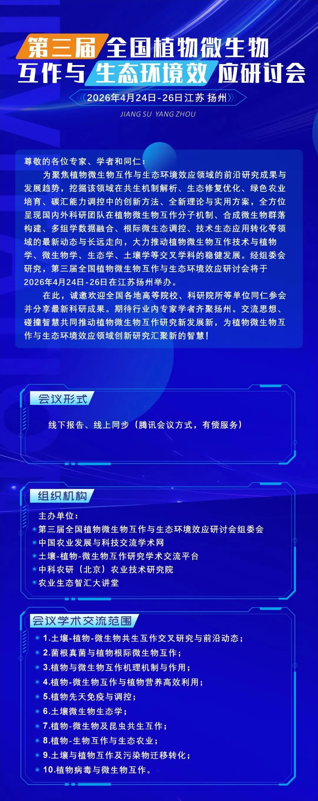 >华南农业大学、福建农林大学、河南农业大学、中国农科院、中科院、兰州大学、贵州大学等单位专家将作报告,全国植物微生物互作会议