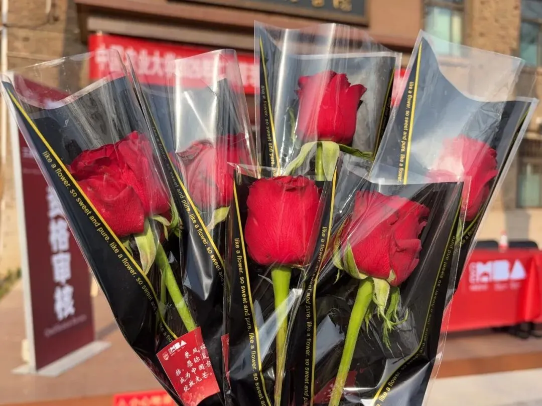 这份细致与暖意,也延续到了场外。中心准备了暖心补给站,提供咖啡、面包等茶歇点心,帮助考生缓解紧张、补充体能;面试结束后,每位考生还收到了带有鼓励标语的花束。处处用心,让远道而来的考生真切体会到中国农大MBA浓浓的人文关怀。