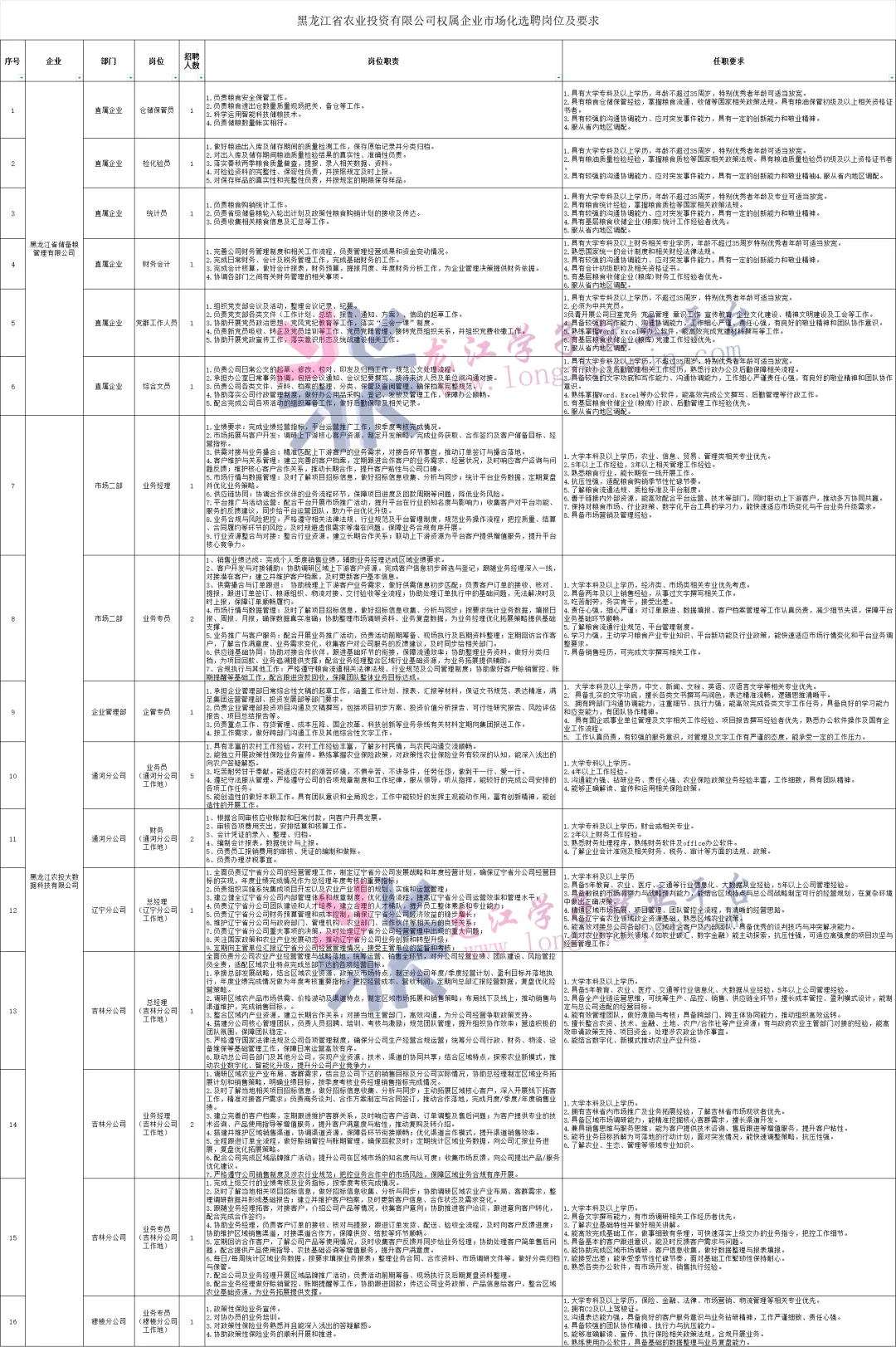 附件:黑龙江省农业投资有限公司权属企业市场化选聘岗位及要求.xlsx