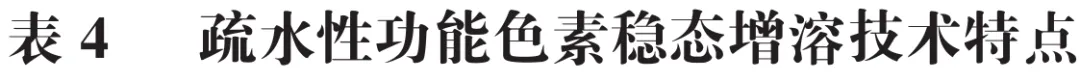 3 不同增溶疏水性功能色素的技术应用情况