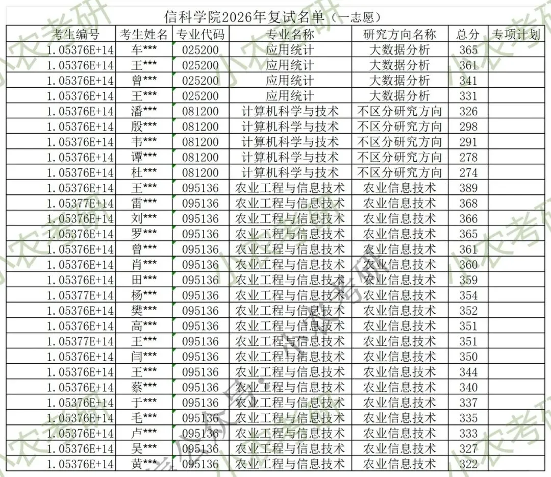 3月29日上午9:00-11:30 | 十教南514、517 | 0812计算机科学与技术、095136农业工程与信息技术、0252应用统计 | 专业笔试 | 具体安排见院官网通知或QQ群:1094576562 |