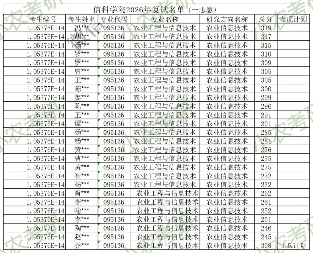 095136 | 农业工程与信息技术 | 农业信息技术 | 45(含1个士兵计划) | 否 |