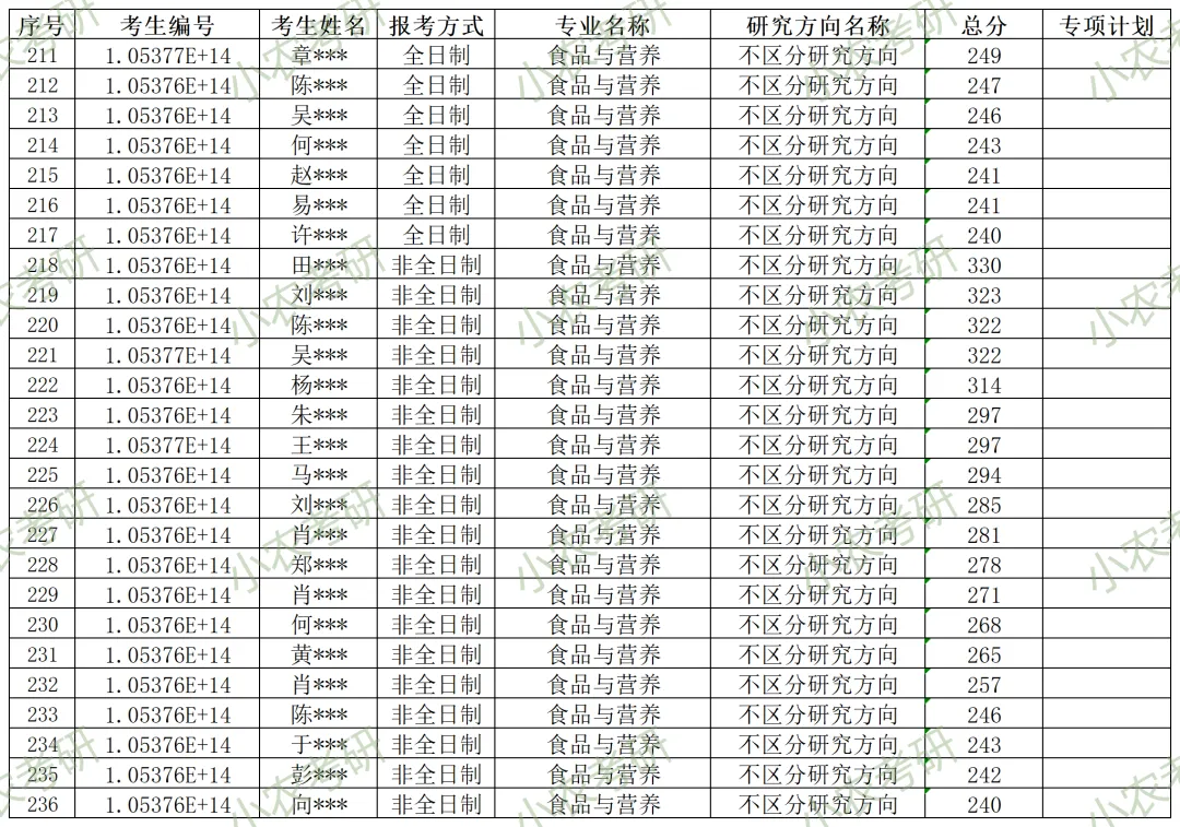 095500 | 食品与营养(非全日制) | 不区分研究方向 | 12 |