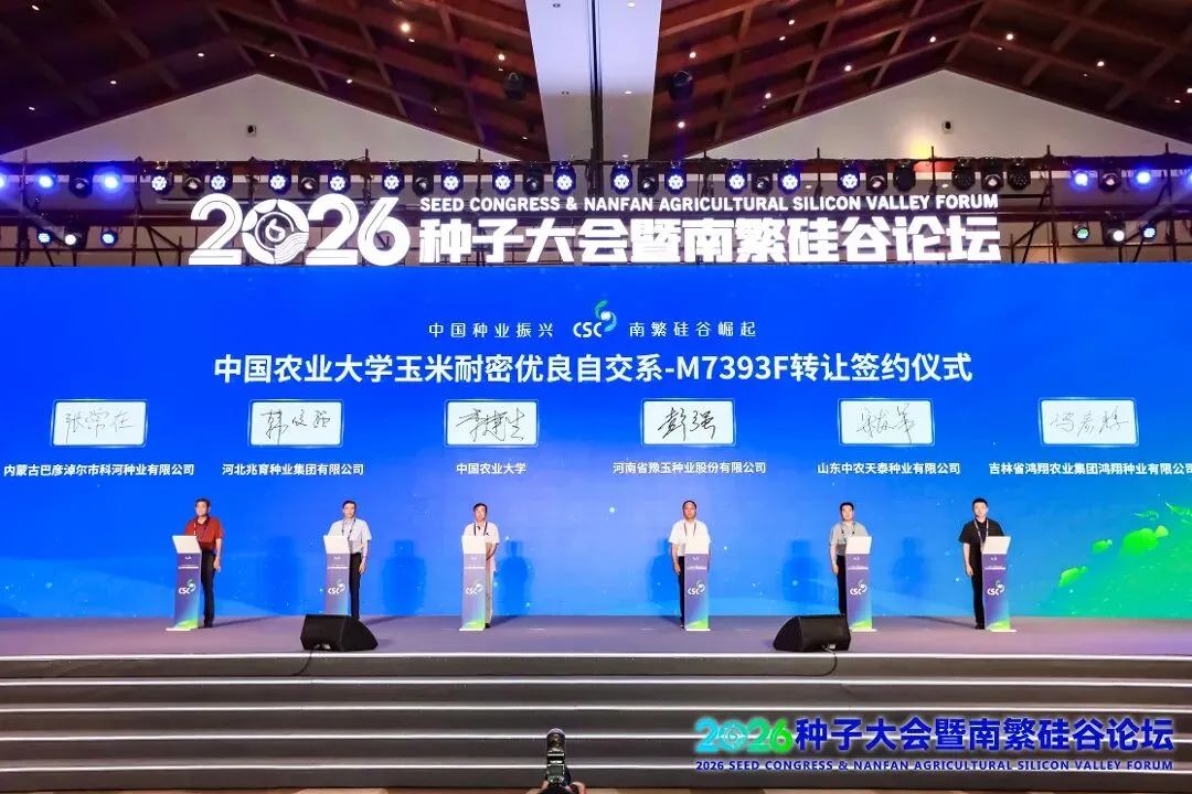 在今日开幕的2026 种子大会上,玉米育种创新签约仪式备受瞩目,成为全场焦点。科河种业与中国农业大学达成合作,正式签约玉米优质自交系M7393F;依托该自交系选育而成的全新玉米品种中河玉 753,也在大会重磅亮相。