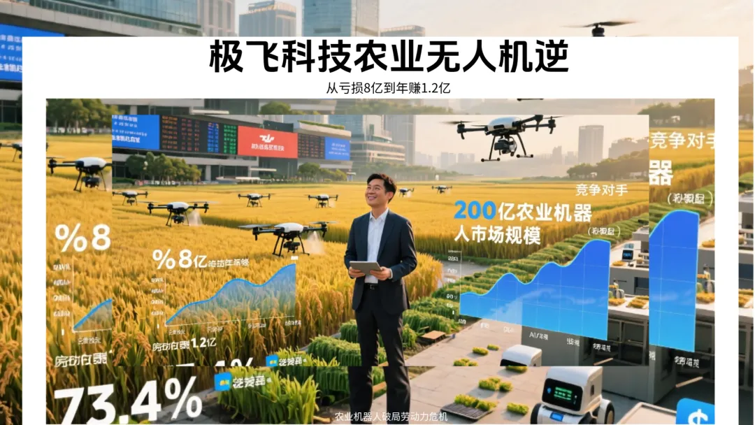 当广州极飞科技的无人机在河南周口的麦田上呼啸而过,精准喷洒农药时,65岁的老农李大爷站在田埂上,望着自家12亩地在15分钟内完成作业,嘴里反复念叨着这句话。这一幕,正在中国广袤的农村大地上演,而背后的主角,是曾经亏损8亿如今年赚1.2亿的极飞科技。