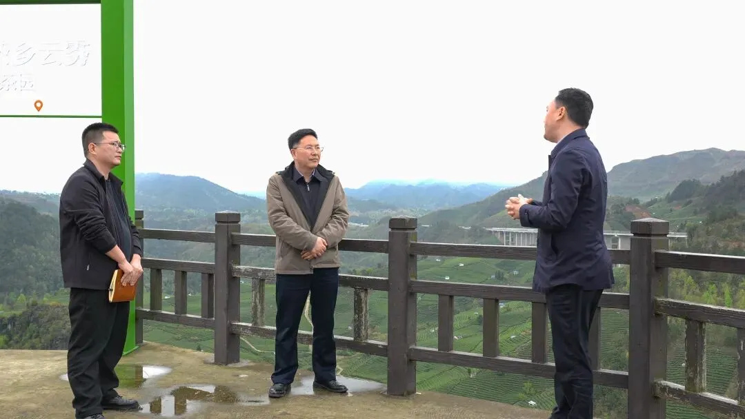 在云雾镇梅子冲茶场,仲成鹏实地察看茶园管护情况,详细了解云雾镇在标准化生产、绿色防控技术应用及茶旅融合发展方面的探索实践。他强调,要守护好云雾贡茶核心产区金字招牌,持续加强茶园精细化管理,推进“三品一标”建设。要依托良好生态和区位优势,进一步挖掘茶文化、民族文化内涵,丰富茶旅融合业态,拓宽群众增收渠道。