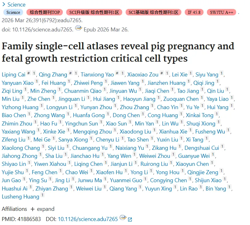 ✅理论意义:该研究为妊娠生理与胎儿生长受限提供了首个细胞分辨率的跨器官全景蓝图,揭示了母体-胎儿联动网络的细胞与分子基础。研究建立的“同家系”单细胞图谱体系,极大提升了猪作为人类生物医学模型的价值,为妊娠相关疾病(如胎儿生长受限、妊娠期高血压等)的机制研究与临床转化提供了重要理论支撑。